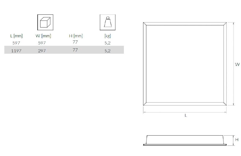 | Size (mm) | 597×597 | 1197×297 |