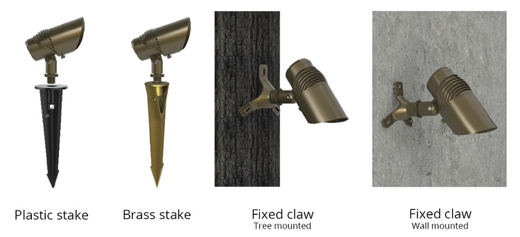• Flexibele installatie met staak of klauw aan boom, muur of in de grond